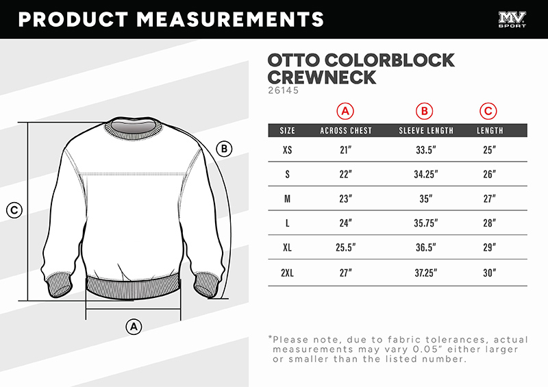 9oz, 65/35 cotton/polyester sueded terry. Contrast yoke panel. Contrast Sleeves. Rib knit cuffs and waistband. Classic fit.